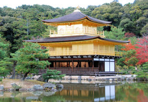 The second day we hired bikes to cover more ground and headed over to the fish market. Following this we headed up river to the Imperial palace. This is was nice enough although you can't see so much so we quickly continued on to Nijo-jo, an old merchant's home from the feudal times. Like most buildings in Japan it has been frequently levelled by fire and restored, so the actual age is hard to say, but the grounds are nice and the moat is well preserved. After lunching in a Ramen cafe we headed to Kinkaku-ji, or the golden temple, which is one of the great sights of Japan. This is situated a little way outside central Kyoto so was not as busy as Kiyomizu-dera, but had a fair drawing of crowds. It is a very picturesque location and being slightly in the hills also meant the trees were healthier and so had more beautiful red leaves. Just down the road is Ryoan-ji, a Zen rock garden where you sit and view the beauty of the patterns in the gravel. The idea is to do this until you can draw your own conclusions about the means of the rocks and swirls, although verifying the number of rock was a tough enough challenge that seemed to occupy most peoples time.